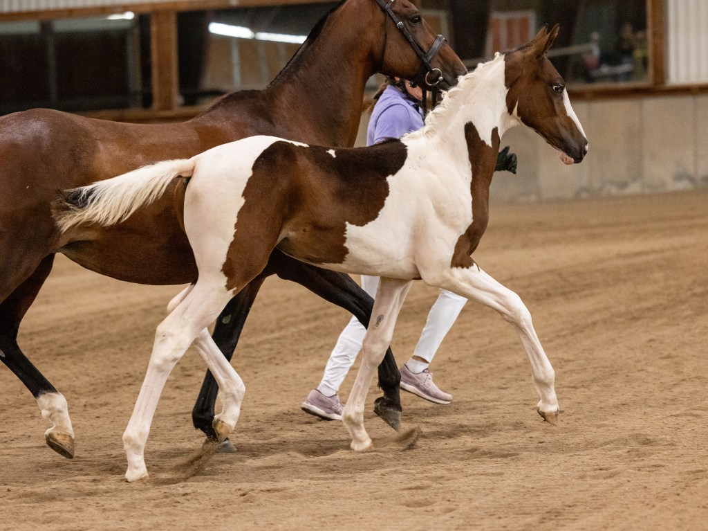 “As a foal Sempatico was the Bundeschampionat” National Champion ZfDP. He is by the Oldenburg approved pinto stallion Semper, who is by Sandro, the Holsteiner stallion who is also the sire of Sandro Hit, Sandro Song and has a total of 36 approved sons, 308 approved mares, 27 states premium mares. Semper’s dam Imago is an Elite Preferent rated KWPN mare, by Samber the world’s most influential and successful pinto Warmblood of all time . Sempatico’s dam line is also impressive, VPrSt Indian Dream, is a Verband Premium mare who is by the Dutch stallion Ico who is by the Keur Preferent rated by the KWPN, Trakehner Marco Polo. VPrSt Indian Dream is out of Sabrina, a Westphalian mare.